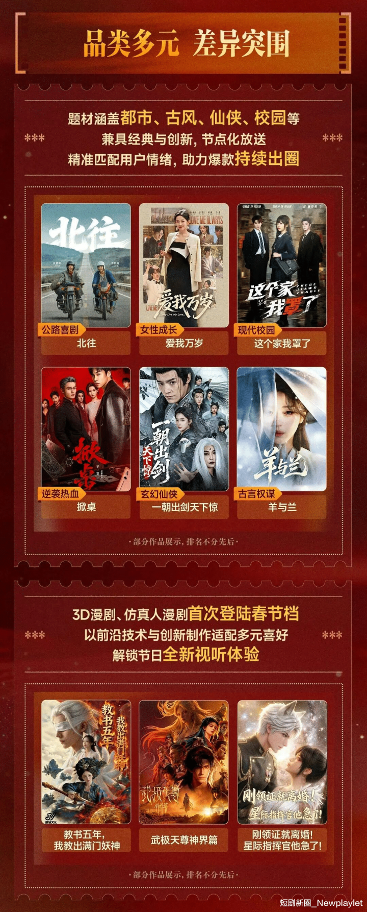 此次春节档期间,平台推出百部重点剧免费首发,凭借多元的内容布局、深度的行业联动及丰富的用户互动玩法,交出了一份亮眼的成绩单,多项核心数据创下新高,也从侧面反映出短剧行业在春节消费场景中的持续升温。