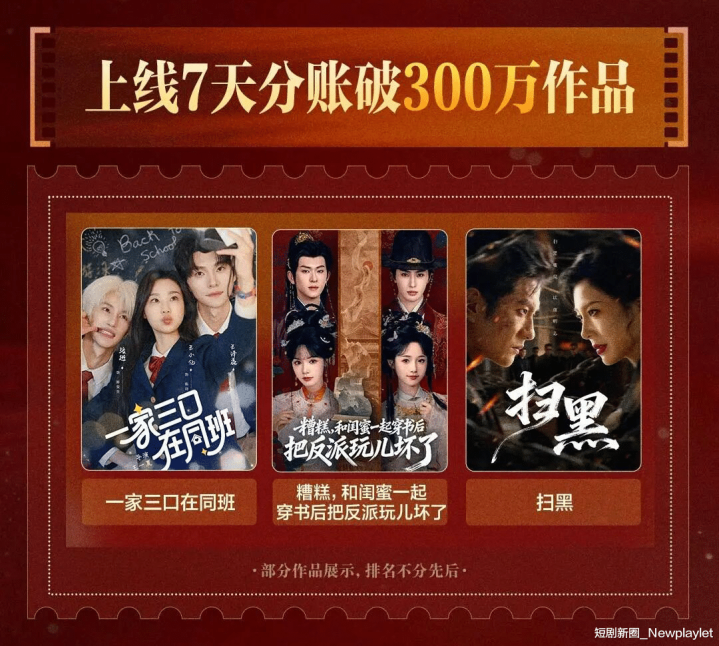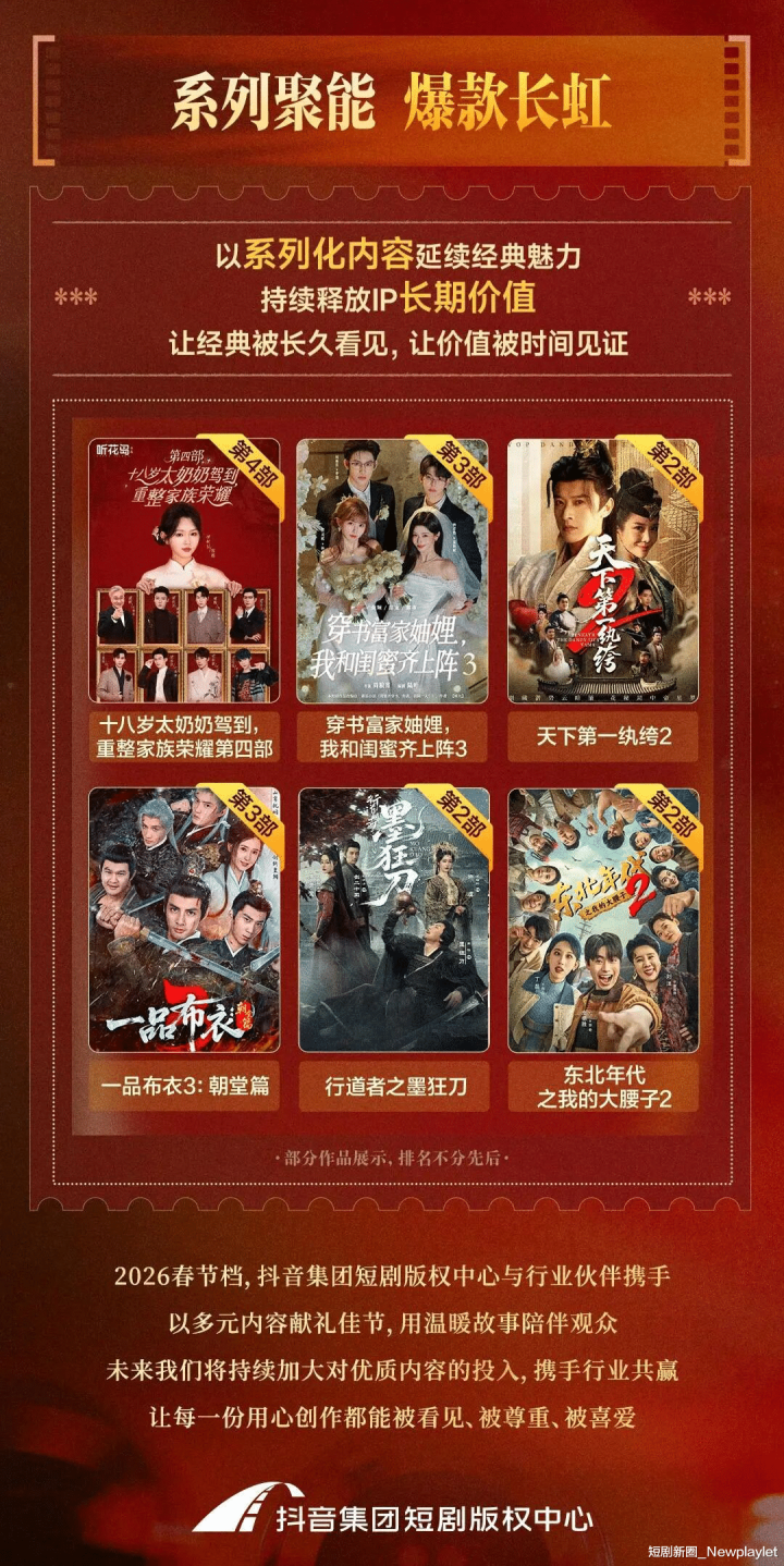 继2026春节档收官战报,抖音集团短剧版权中心发布了红果短剧春节档的分账报告。