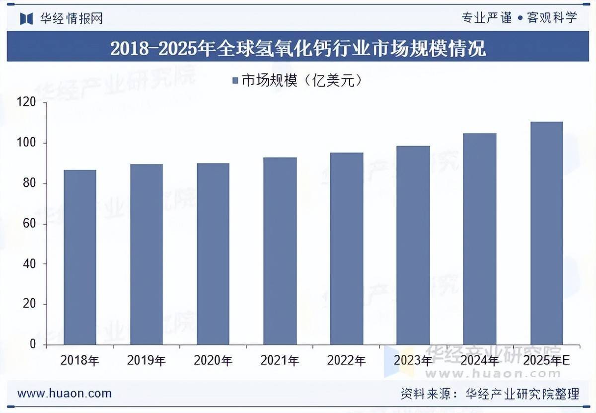 随着全球对环境保护意识的提升以及工业生产技术的进步,氢氧化钙作为一种重要的基础化学品,在环保治理、建筑材料、农业改良等多个领域中发挥着不可替代的作用。全球氢氧化钙行业市场规模近年来持续扩容,2024年全球氢氧化钙市场规模突破百亿美元,预计2025年市场规模将增至110.61亿美元左右。